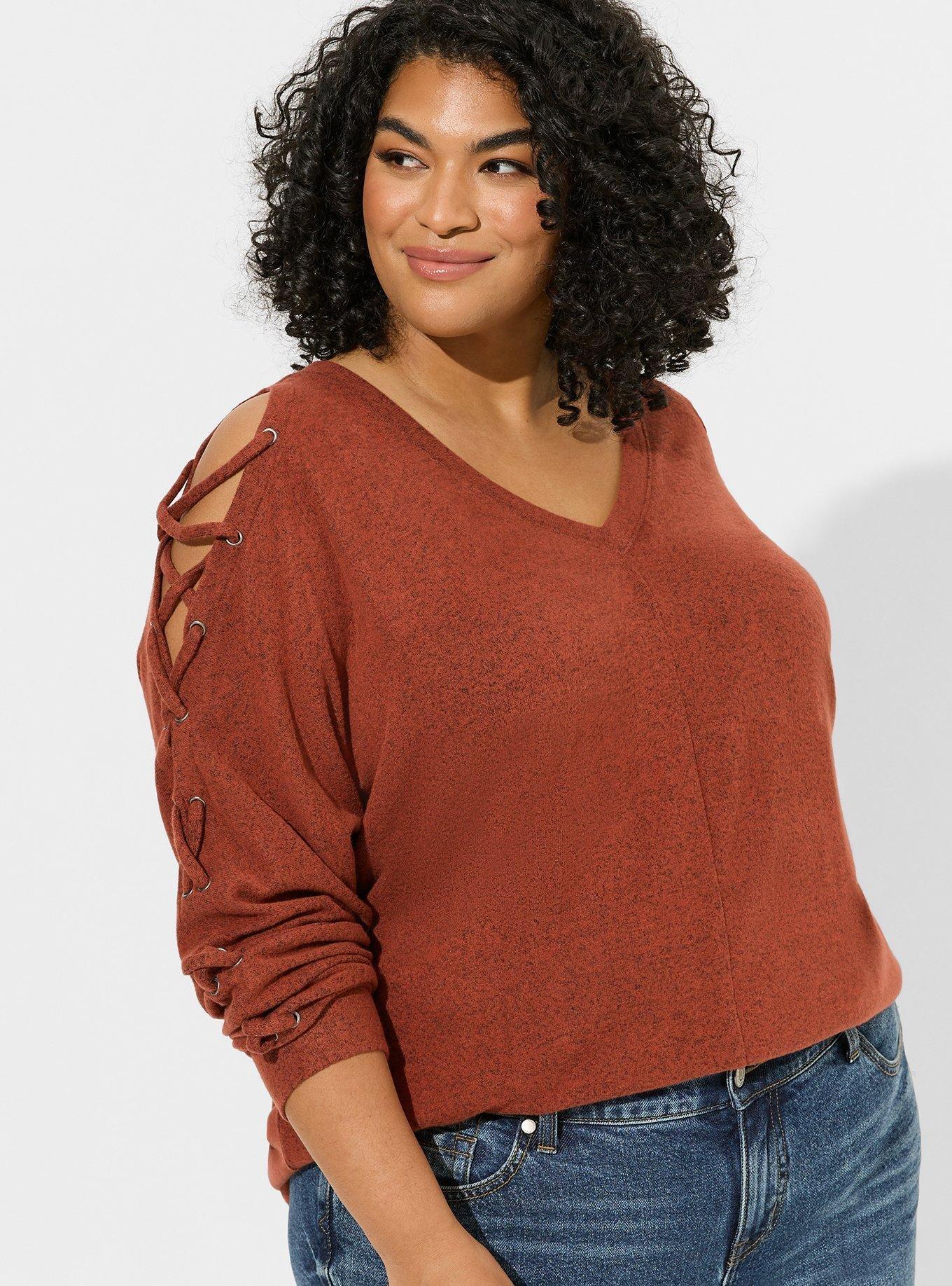 Brushed Hacci V-Neck Lace Up Sleeve Top