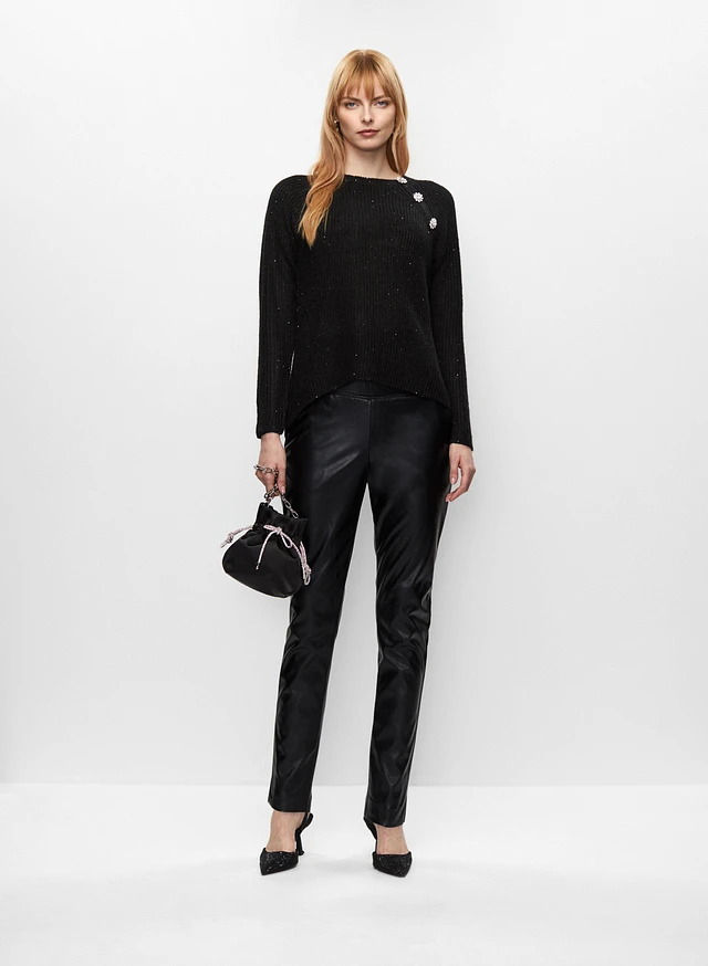 Button Detail Sweater & Vegan Leather Pants