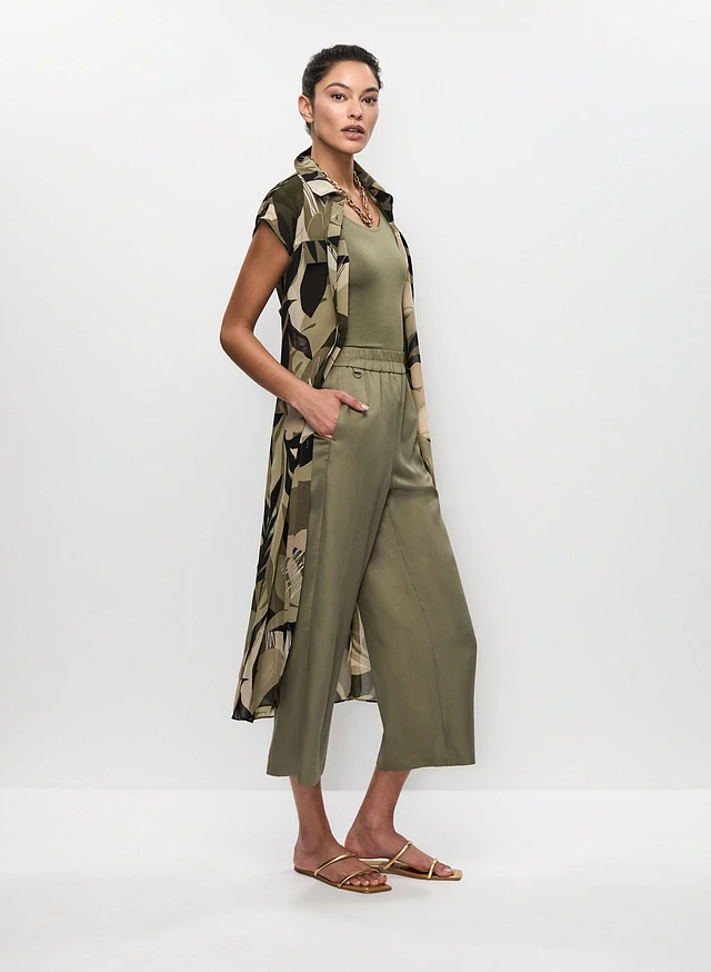 Button-Front Chiffon Tunic & Tencel Culotte Pants