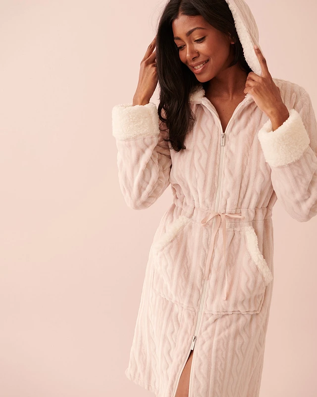 Recycled Fibers Soft Cable Knit Hooded Robe
