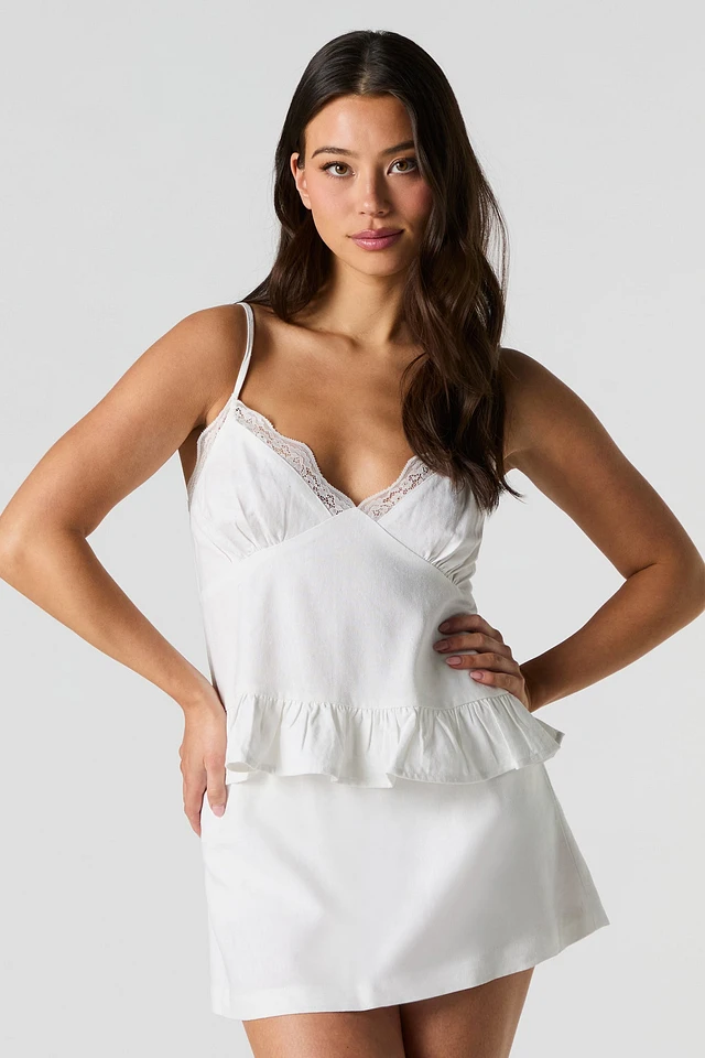 Camisole en mélange de lin avec liséré dentelle
