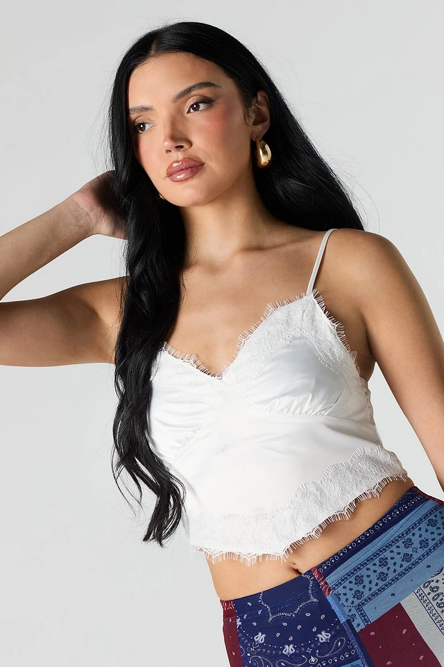 Camisole sans couture avec liséré de dentelle et encolure en V