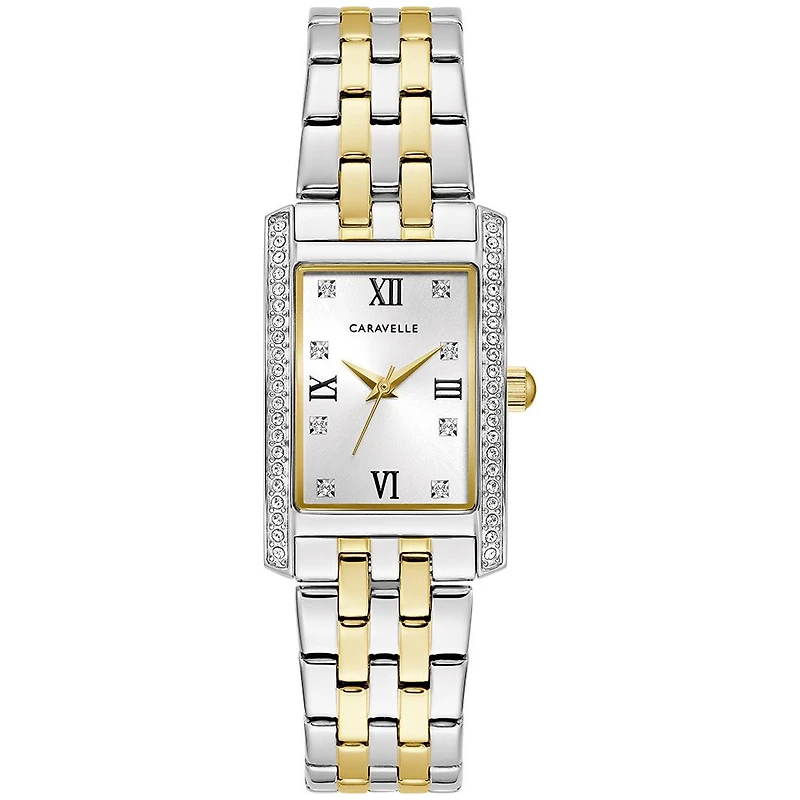 This elegant timepiece features a stunning design with a sparkling crystal-encrusted bezel and a sleek metal band. The shimmering accents add a touch of luxury and sophistication, making it the perfect accessory to elevate any outfit for both day and night.