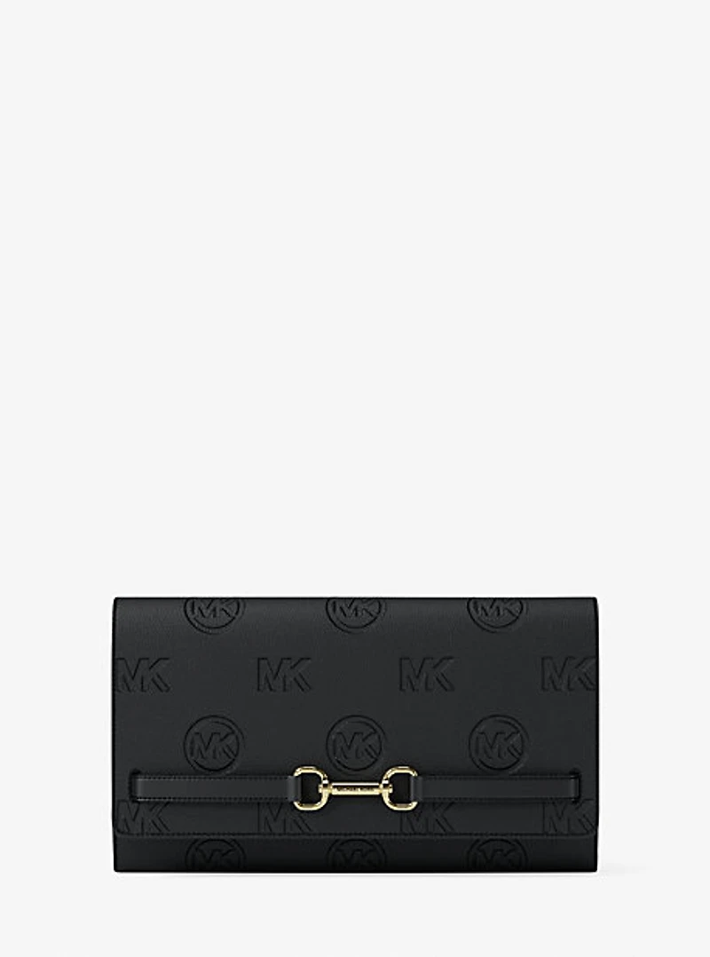 Wallet, polyurethane blend, 60% polyurethane/40% polyester, gold-tone hardware, 8. 25" w x 4. 75" h x 1. 25" d, adjustable strap: 20"-24", exterior details: back slip pocket, interior details: back slip pocket, 8 card slots, lining: 100% polyester, snap fastening, imported
