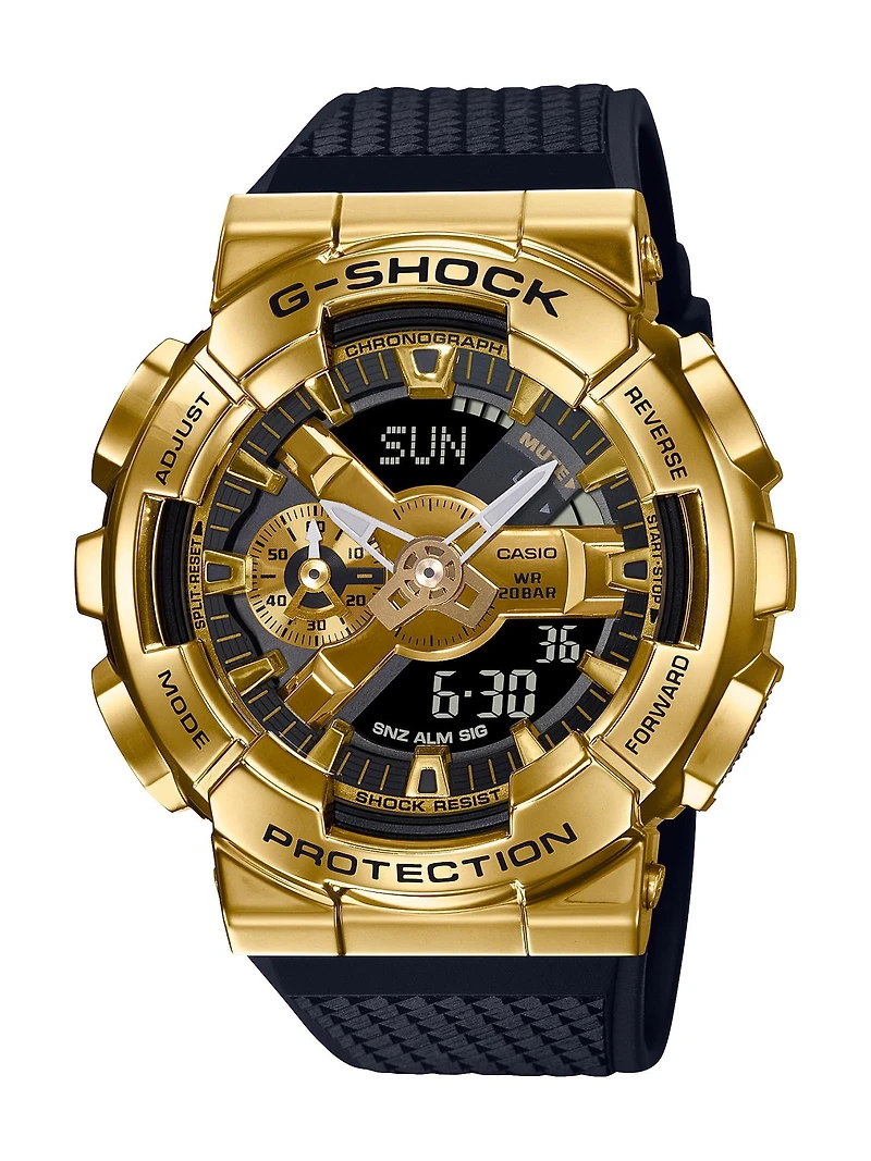 The bold design includes gold accents that enhance the tough, shock-resistant case, making it perfect for those who need a reliable and stylish watch for both active and everyday use.
