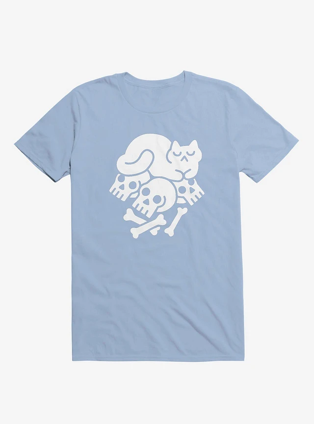 Dancing Skeleton With A Cat Light Blue T-Shirt