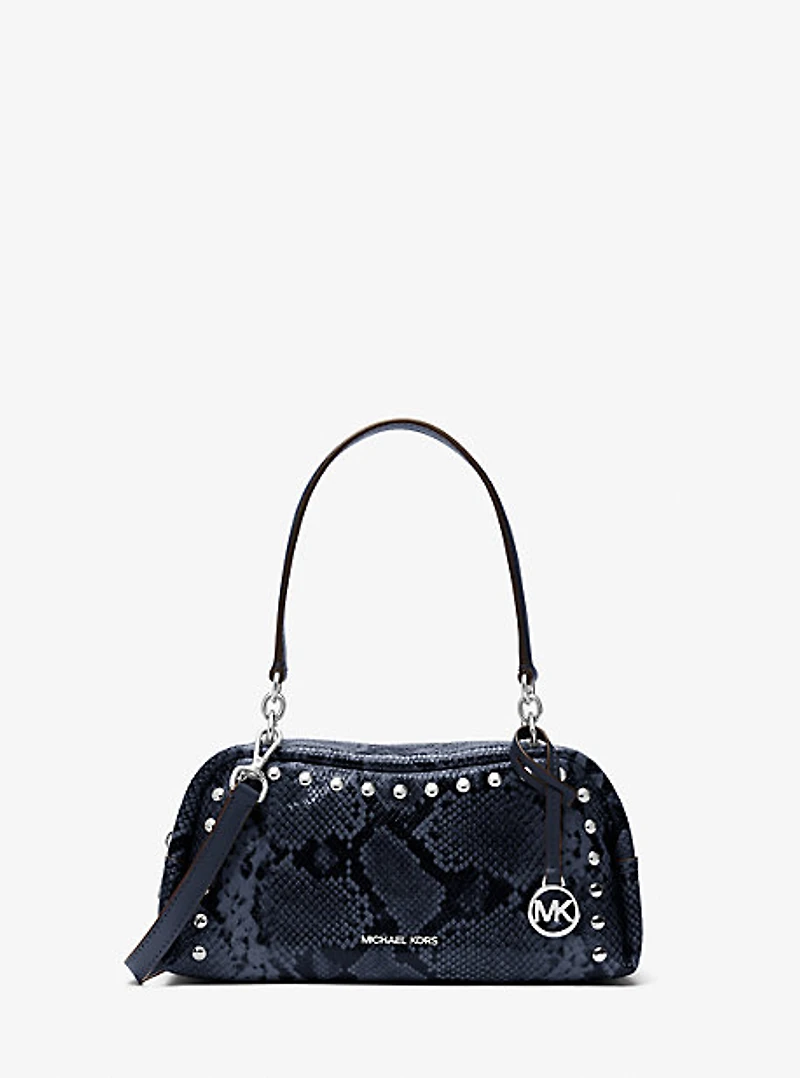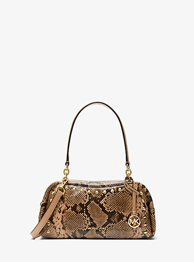 Cecily Small Studded Snake Embossed Shoulder Bag