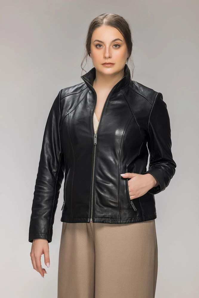 CHAIA is your new must have piece that pairs perfectly with jeans and trousers alike! Made in our luxurious lamb leather and fully lined for your comfort. She is made in our Comfort Fit and has numerous panels to show off your shape, front pockets and a band collar. Wear CHAIA with confidence and ease!