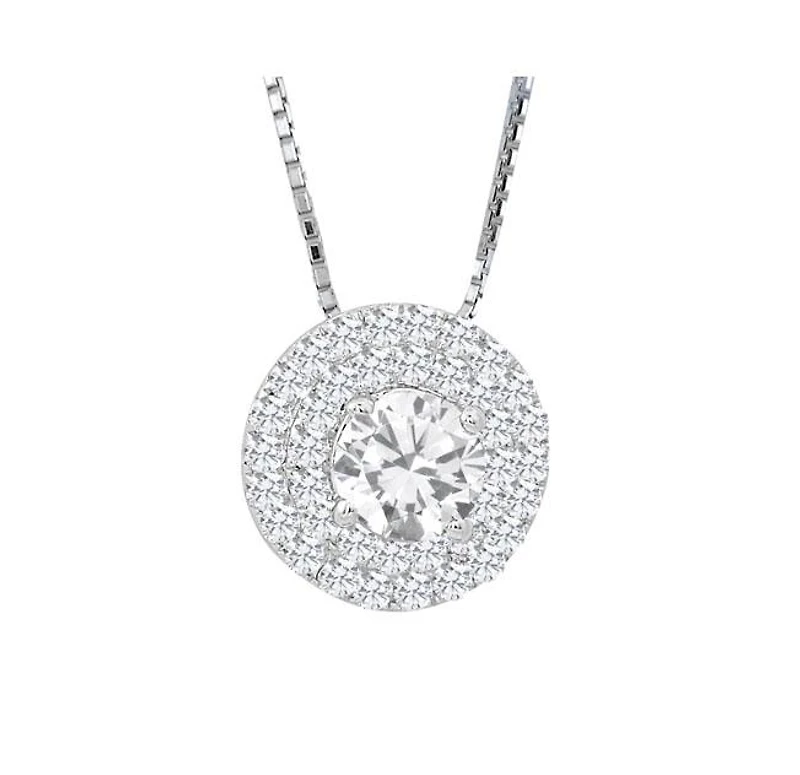 She’s guaranteed to sparkle with this .61 carat total weight diamond pendant, beautifully set in 14k white gold. A stunning .37 carat total Canadian diamond is complemented by a couple halo of glistening diamonds. This pendant is exclusive to the Charmed by Richard Calder Collection.