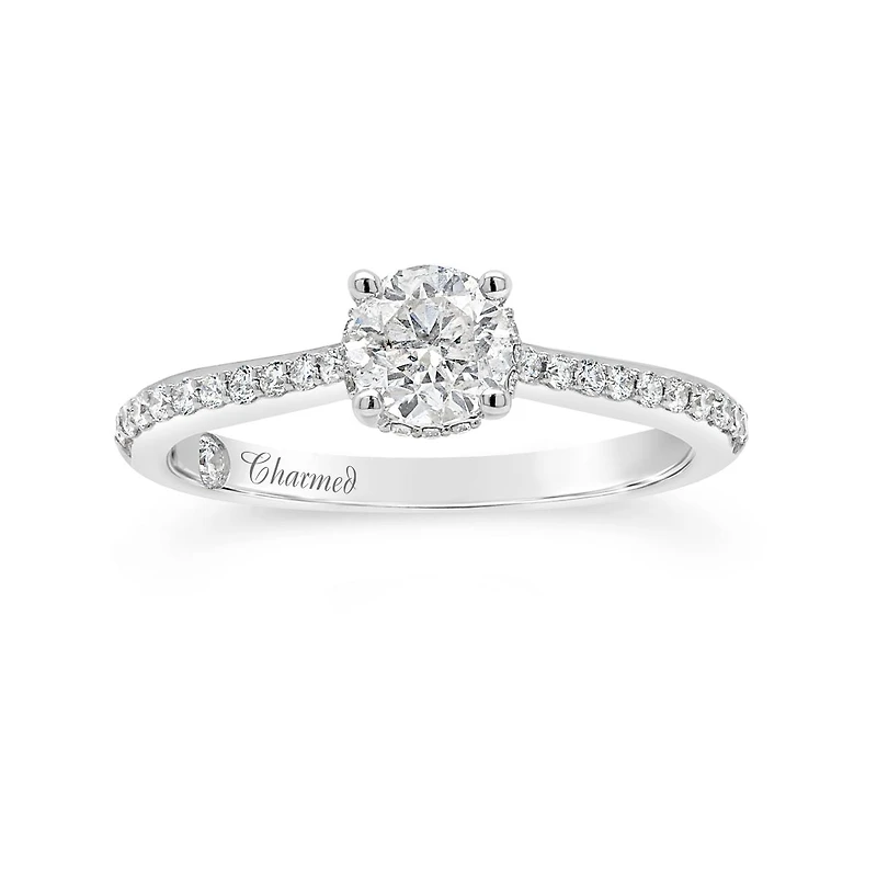 The Charmed By Richard Calder 14K White Gold 0.93CTW Diamond Engagement Ring is a symbol of love and devotion, representing the start of a lifelong commitment. Its exquisite design and exceptional craftsmanship ensure that it will be cherished for generations to come. Let its beauty and brilliance symbolize the depth of your love and the promise of a lifetime together.