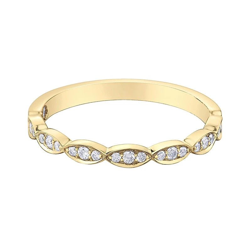 The Charmed By Richard Calder 14K Yellow Gold 0.17CTW Diamond Wedding Band is a stunning and elegant piece of jewellery .  This wedding band combines the beauty of high-quality materials with the sparkle of diamonds to symbolize eternal love and commitment. The band is made from 14-karat yellow gold, offering a warm and radiant hue. Yellow gold has a timeless appeal and adds a touch of classic elegance to the band, making it a popular choice for wedding jewellery.