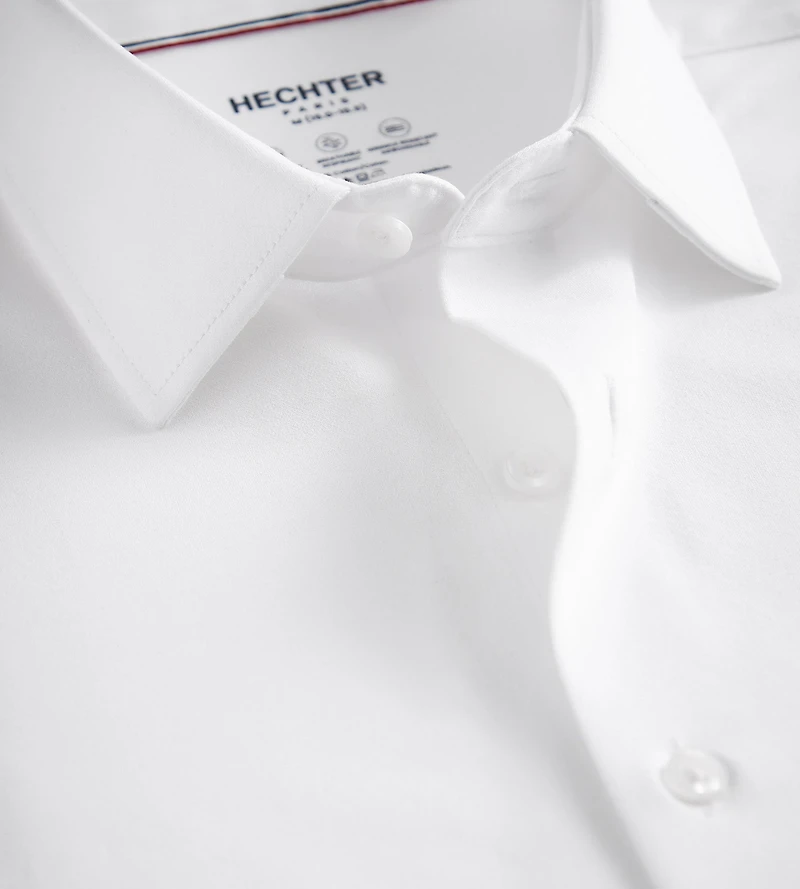 Chemise habillée jacquard à manches courtes, coupe ajustée, maille extensible 360°, infroissable et douce au toucher