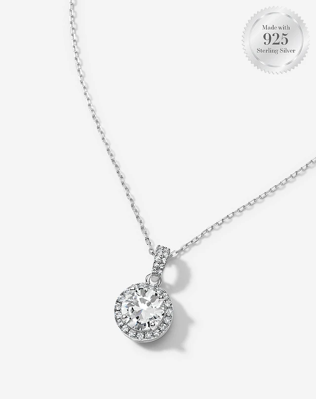 Precious Metal-Plated Sterling Silver Pavé Halo Necklace
