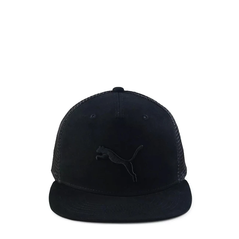This Puma Clone black trucker cap will keep your head cool while improving performance at the gym and is also perfect for everyday wear. Made with a woven cotton shell, this hat has a structured fit and snapback closure. Features include open mesh back panels for superior ventilation, and an embroidered PUMA Cat logo at the front.
