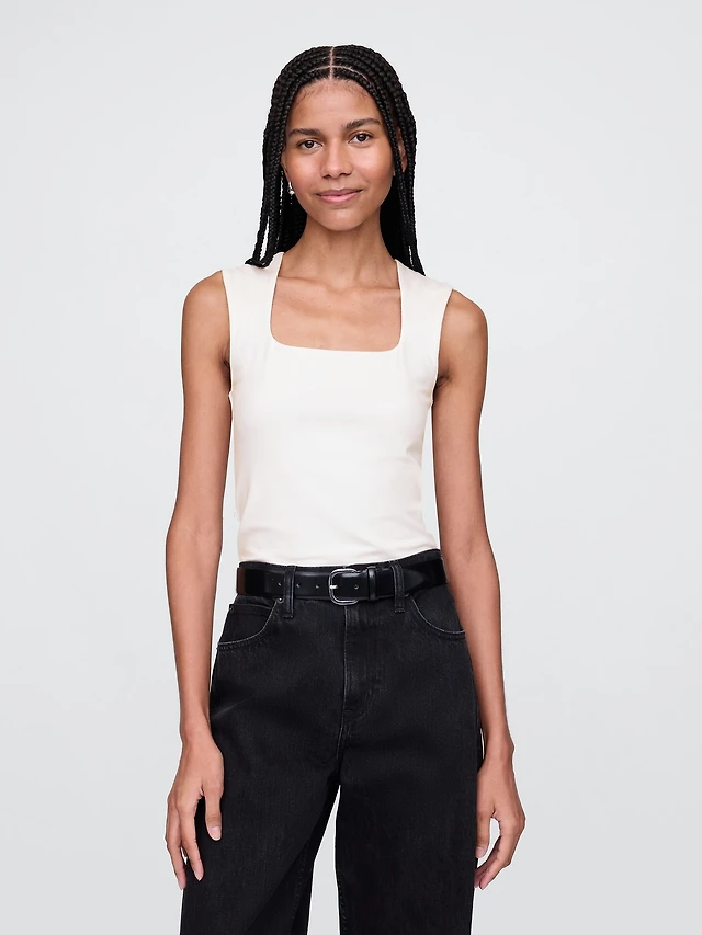 AERO Pointelle Knit Long Sleeve Ruched Square Neck Top