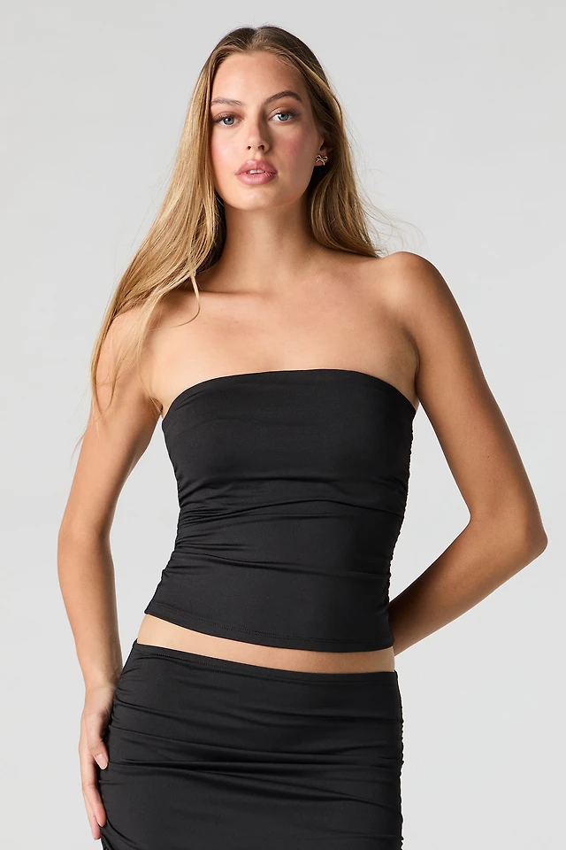 Ardene Strappy Ruched Tube Top with Rosette in | Size | Polyester/Spandex