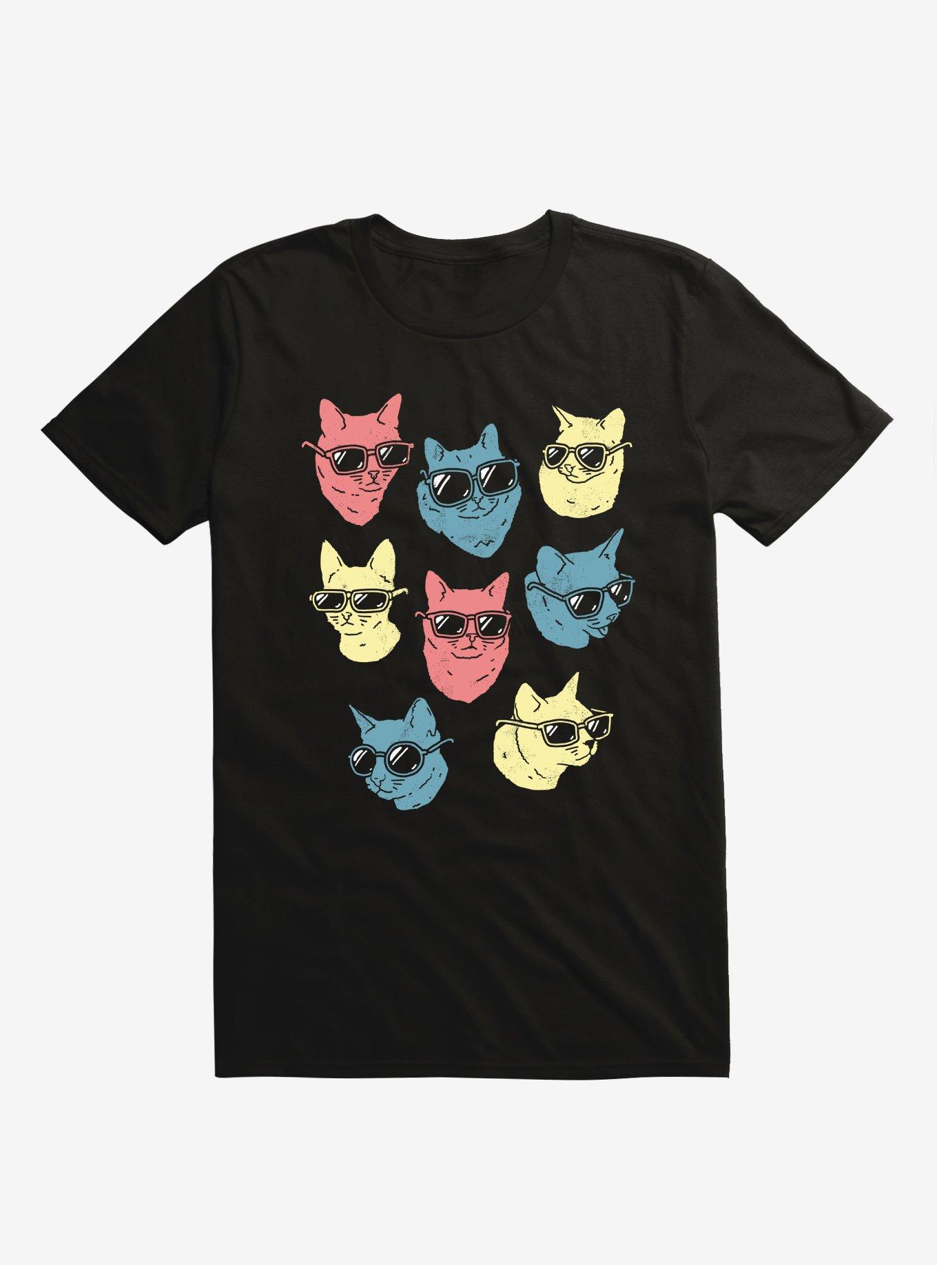 Fact: Shades are cool. Another fact: Cats are cool. Combine the two? Coolness overload. This lightweight black tee has a bunch of multicolored felines wearing sunglasses - and yes, it's also cool. Officially licensed art from Ronan Lynam.