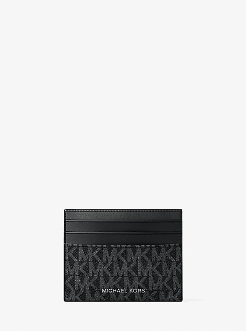 Card case, logo-print canvas, 89. 4% coated canvas/9. 6% polyester/1% polyurethane, trim: 60% polyurethane/20% cotton/20% polyester, silver-tone hardware, 4”w x 3”h x 0. 2"d, exterior details: slip pocket, 3 card slots, id window, lining: 100% polyester, imported
