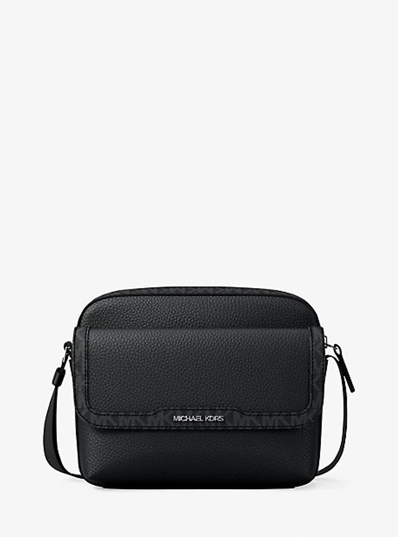 Crossbody bag, pebbled leather/logo-print canvas, 100% leather, trim: 89. 4% coated canvas/9. 6% polyester/1% polyurethane, gunmetal hardware, 2. 2”w x 6. 7”h x 9”d, adjustable strap: 17. 5"-28", exterior details: front snap slip pocket, lining: 100% polyester, zip fastening, dust bag not included, imported