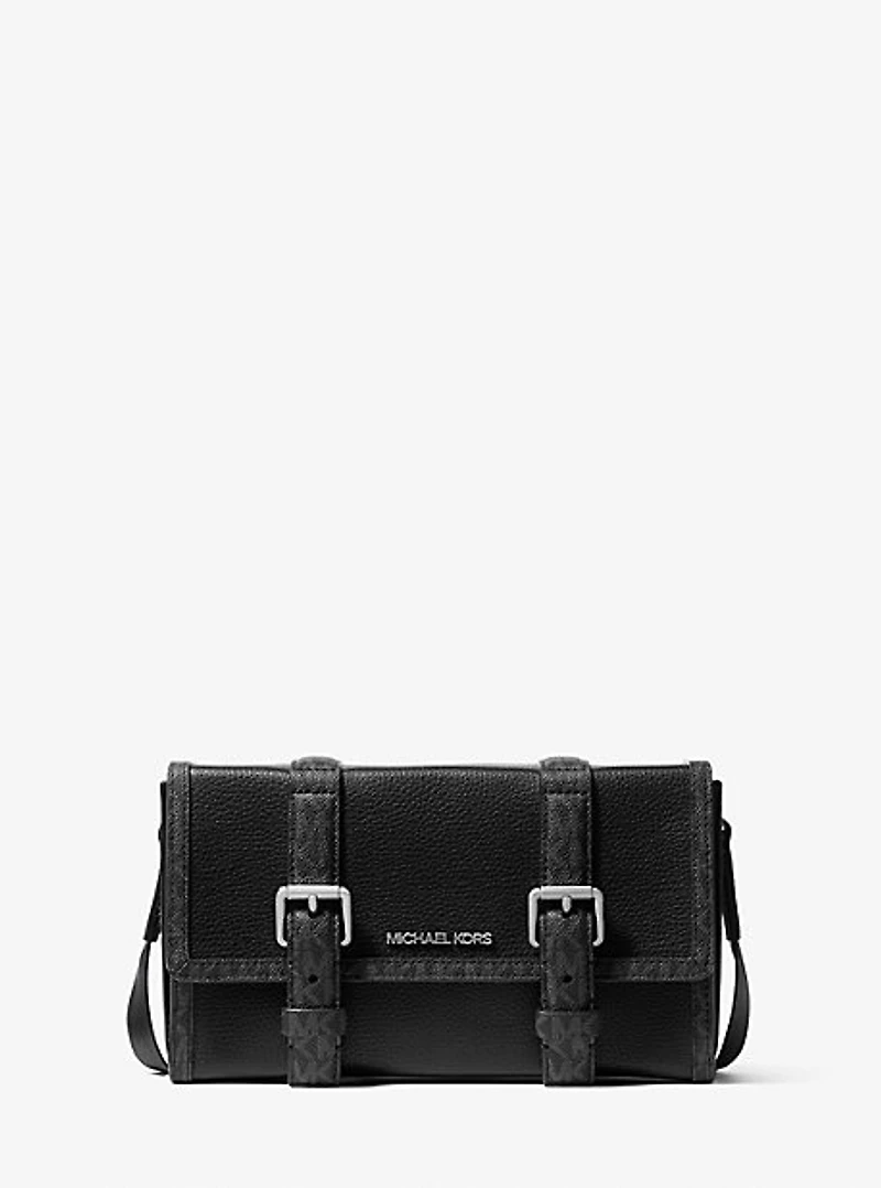 Trunk crossbody bag, pebbled leather/logo-print canvas, 100% leather, trim: 89. 4% coated canvas/9. 6% polyester/1% polyurethane, silver-tone hardware, 10. 5”w x 6”h x 2. 75”d, adjustable strap: 16. 5"-28", interior details: slip pocket, lining: 100% polyester, snap fastening, dust bag not included, imported