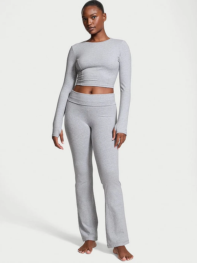 Ardene Mid Rise Foldover Flare Leggings in Light Grey | Size | Elastane/Viscose