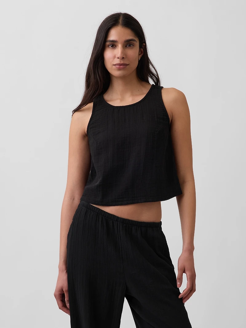 Cotton Gauze Racer Shell Tank Top