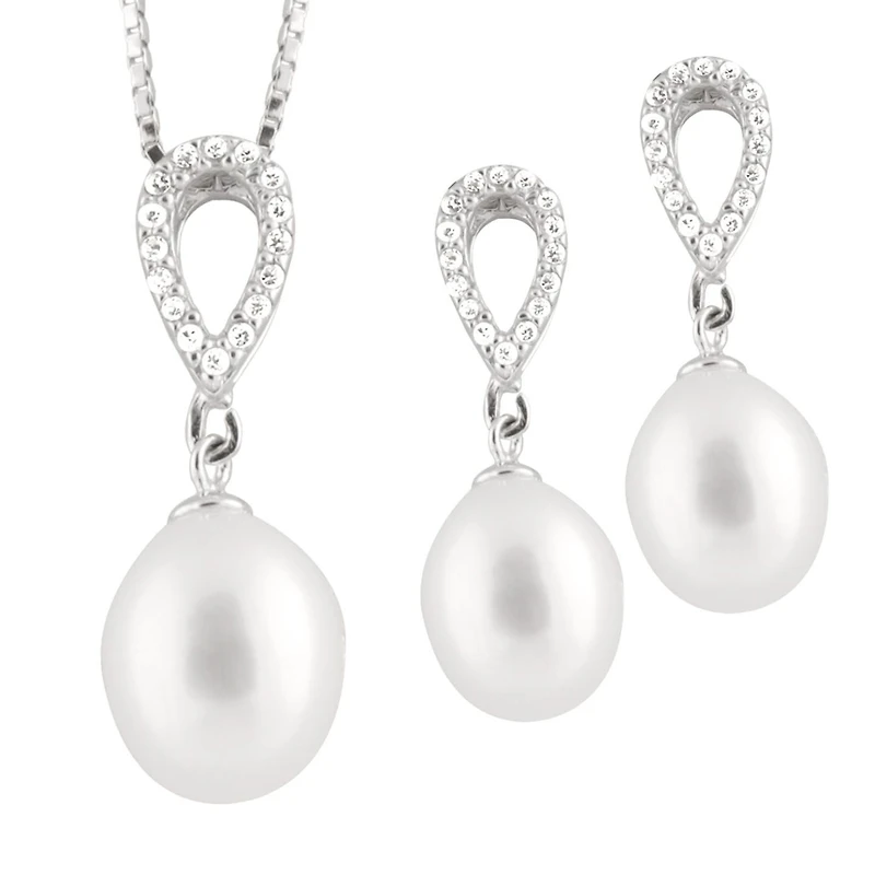 Cubic Zirconia & Pearl 2 Piece Silver Set