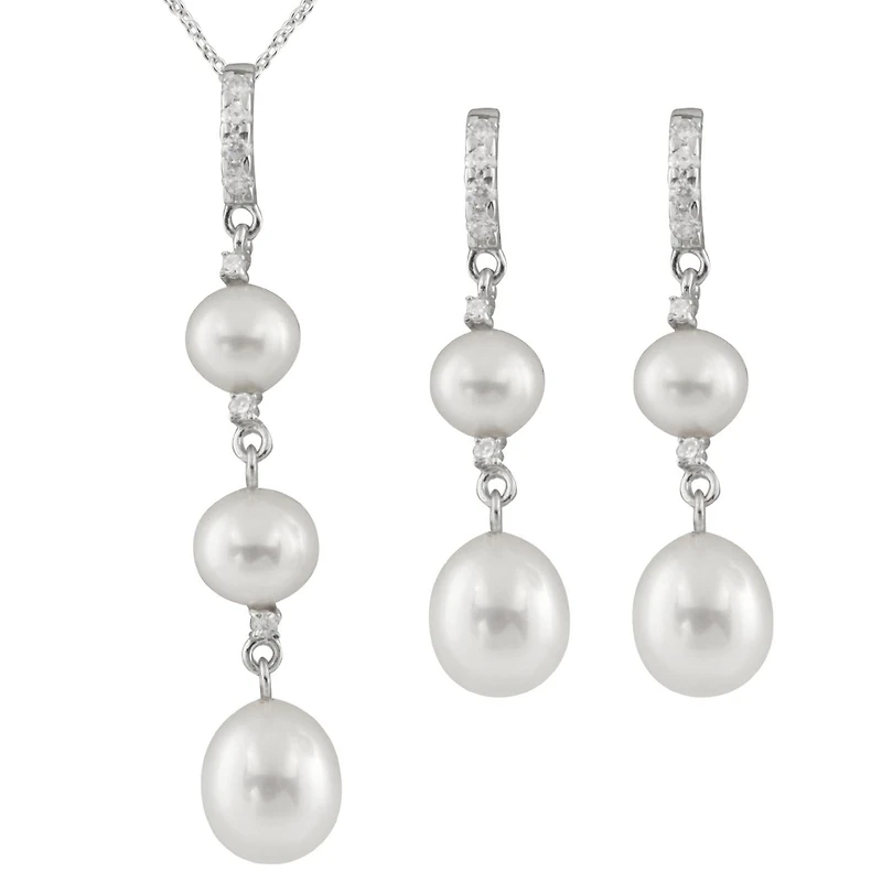 Dangling Silver Pearl 2 Piece Set