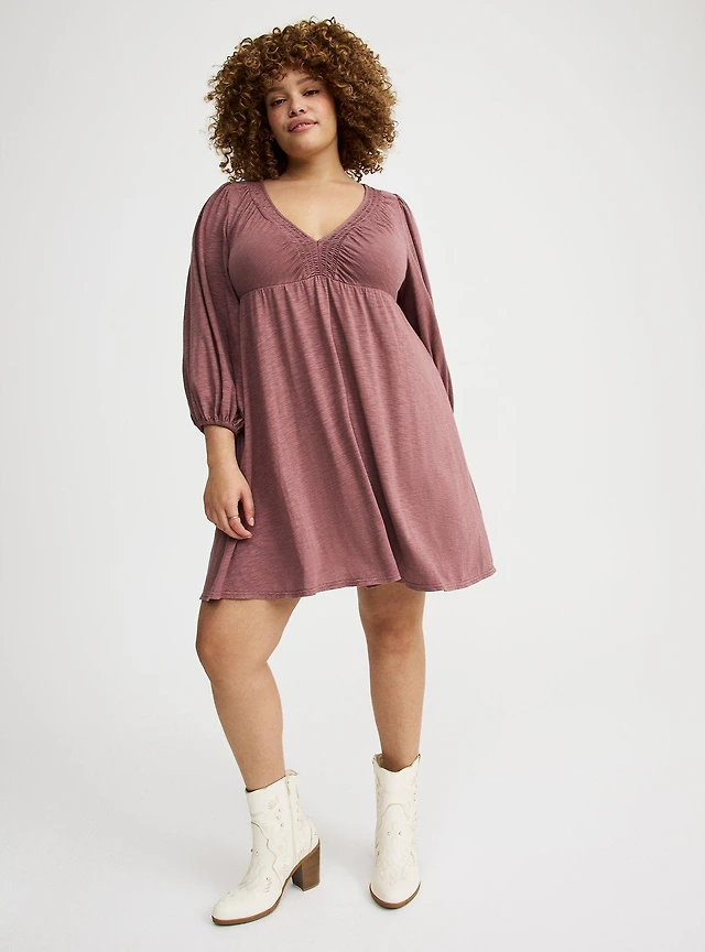 V-Neck Ribbed Mini Dress