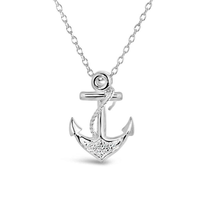Diamond Addiction Sterling Silver Diamond Anchor Pendant
