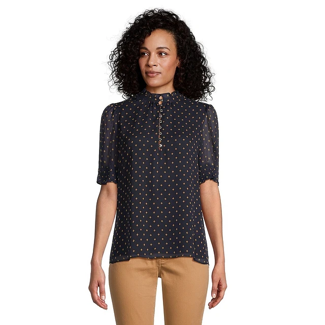 Diamond Dot Puff-Sleeves Blouse