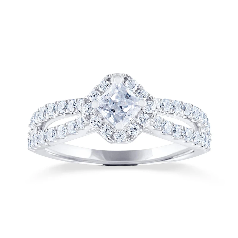 Diamond Revelations 14K White Gold 0.95CTW Princess Cut Halo Bridal Ring