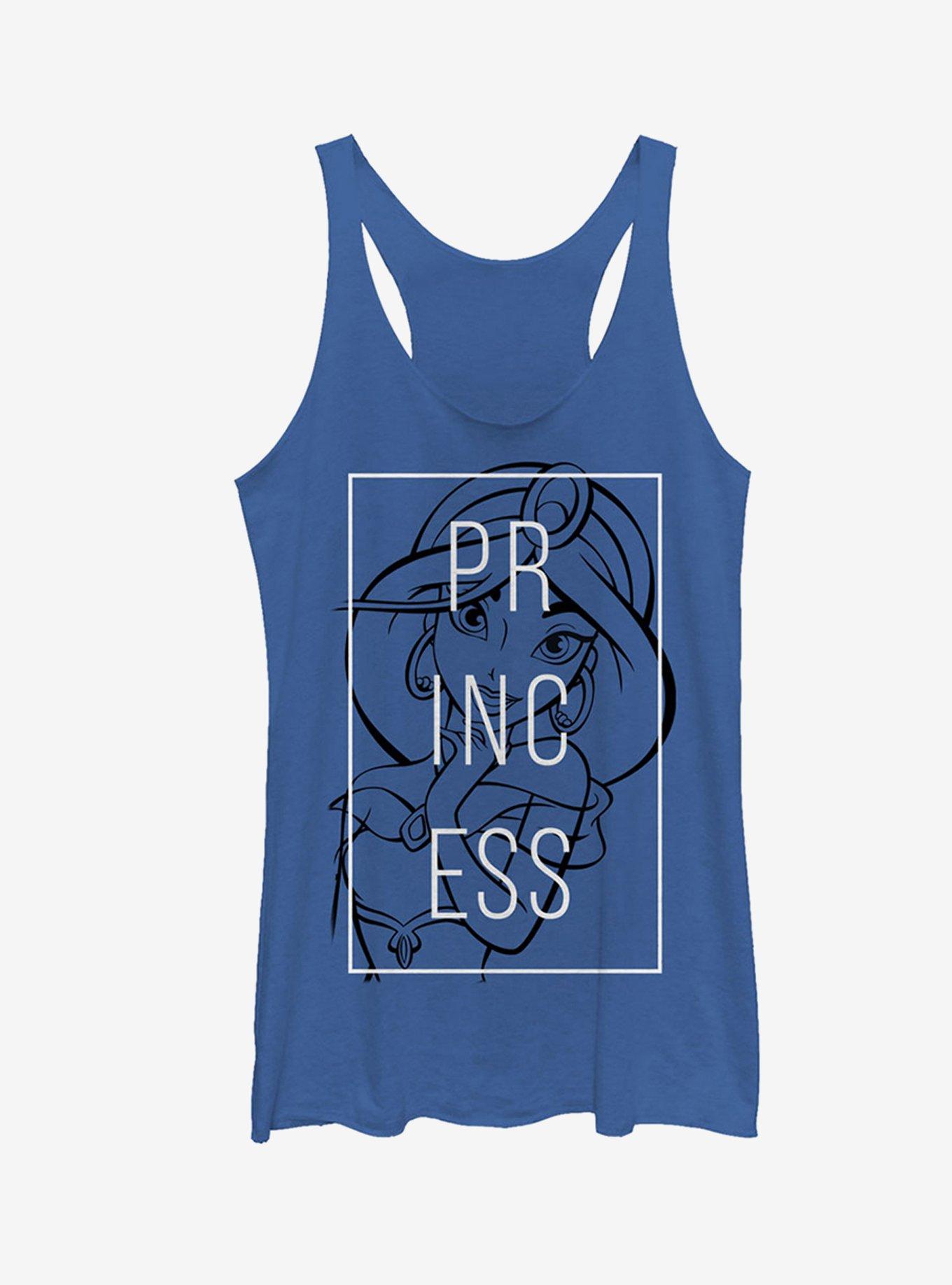 Explore Agrabah with this blue tank from Disney's Aladdin . Featuring the rebellious princess Jasmine outlined in black, this tank features "Princess" and a rectangular outline in white.