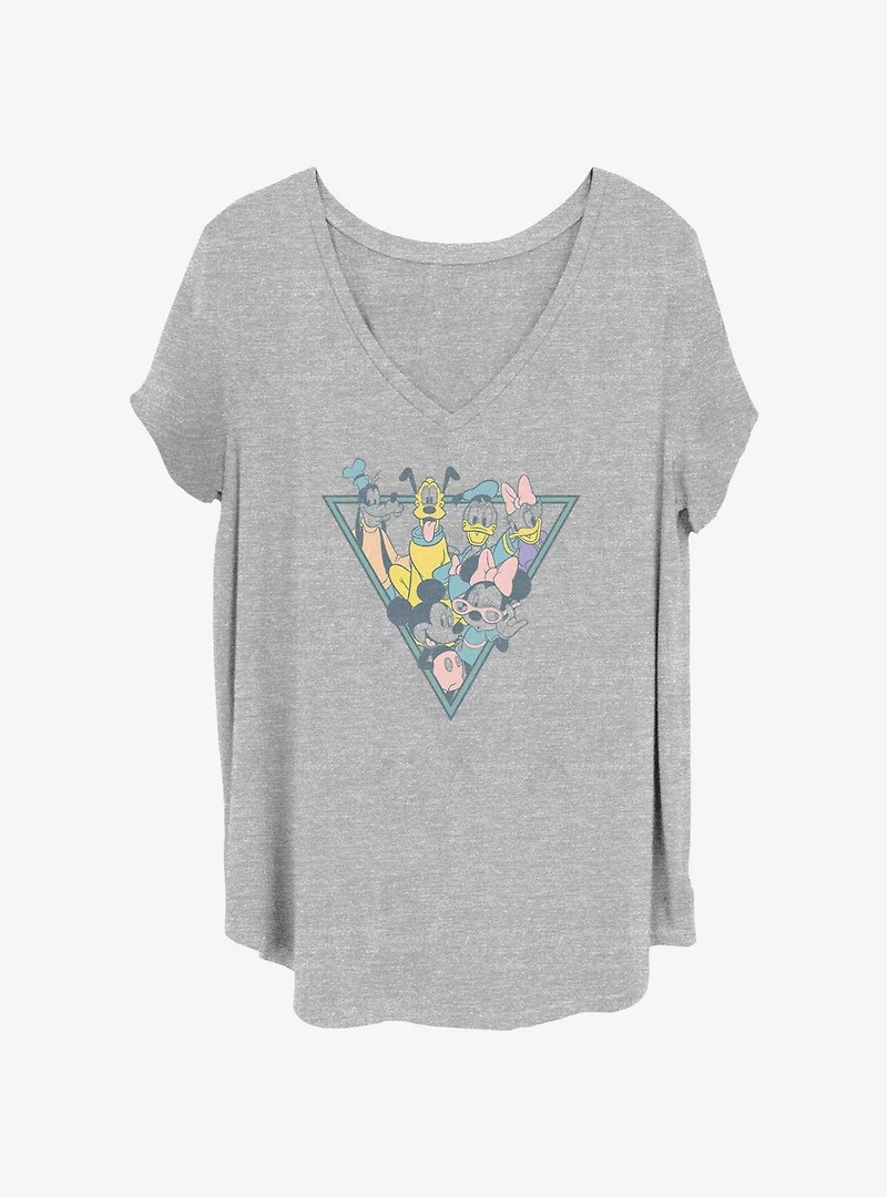 Three sides -- six characters! This plus size tee has a triangle graphic featuring Goofy, Pluto, Donald, Daisy, Mickey and Minnie.
