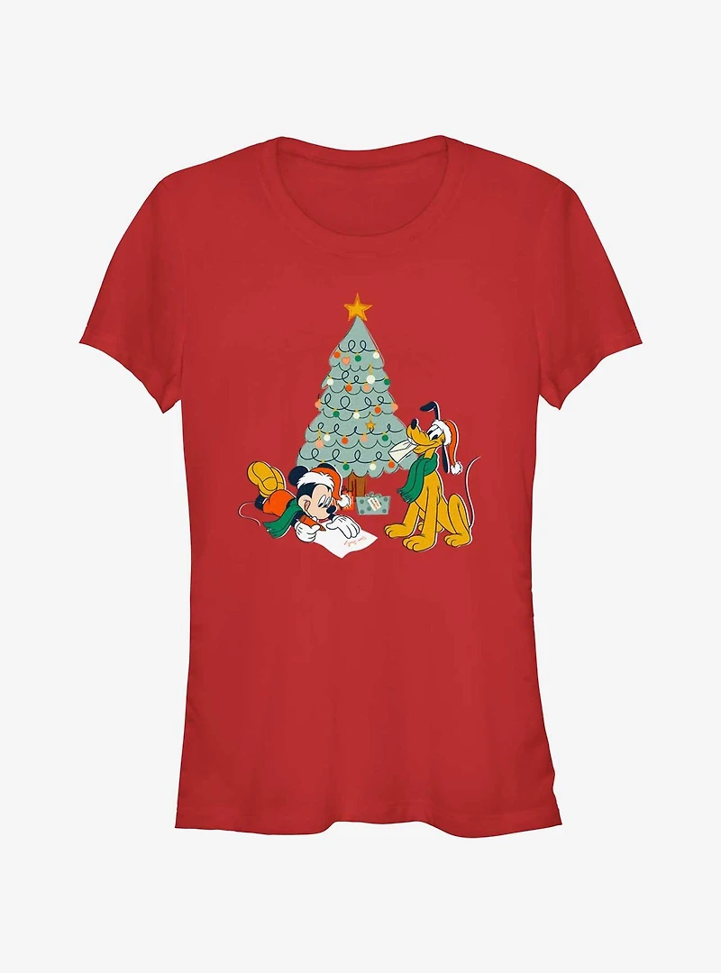 Naughty or nice? Nice, for sure! Mickey and Pluto prepare a latter to Santa on this fitted Disney tee.
