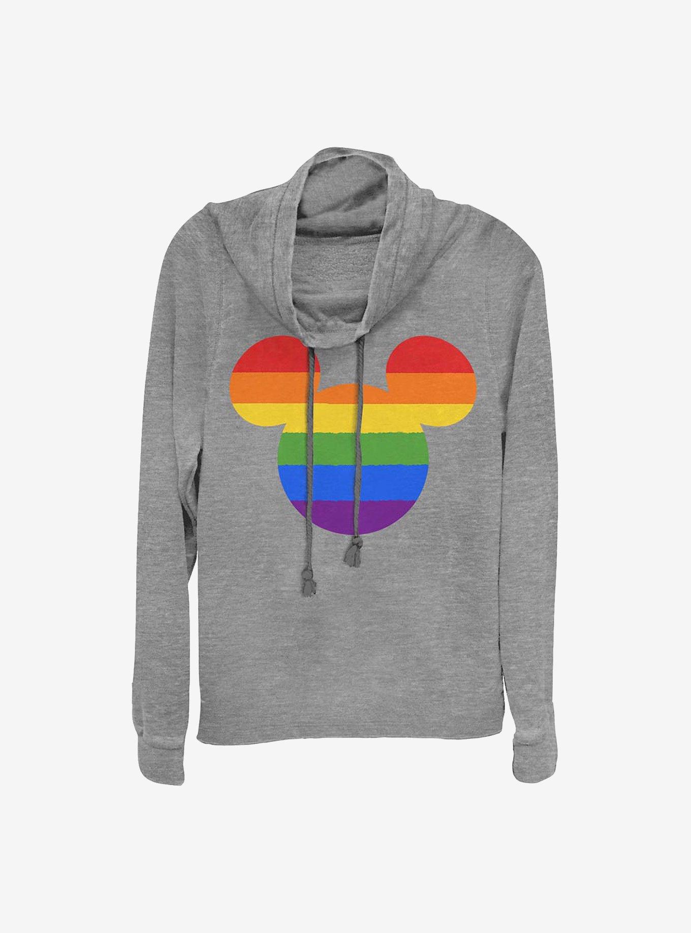 Disney Mickey Mouse Rainbow Ears Cowlneck Long-Sleeve Girls Top
