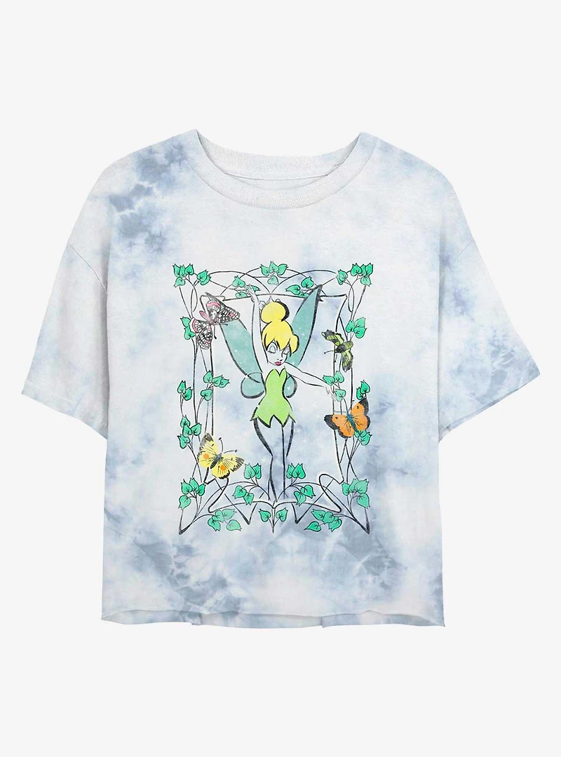 Disney Tinker Bell Illustration Tie-Dye Girls Crop T-Shirt