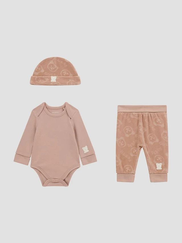 Eco Teddy Bear Bodysuit, Pants and Hat Set (0-12M)