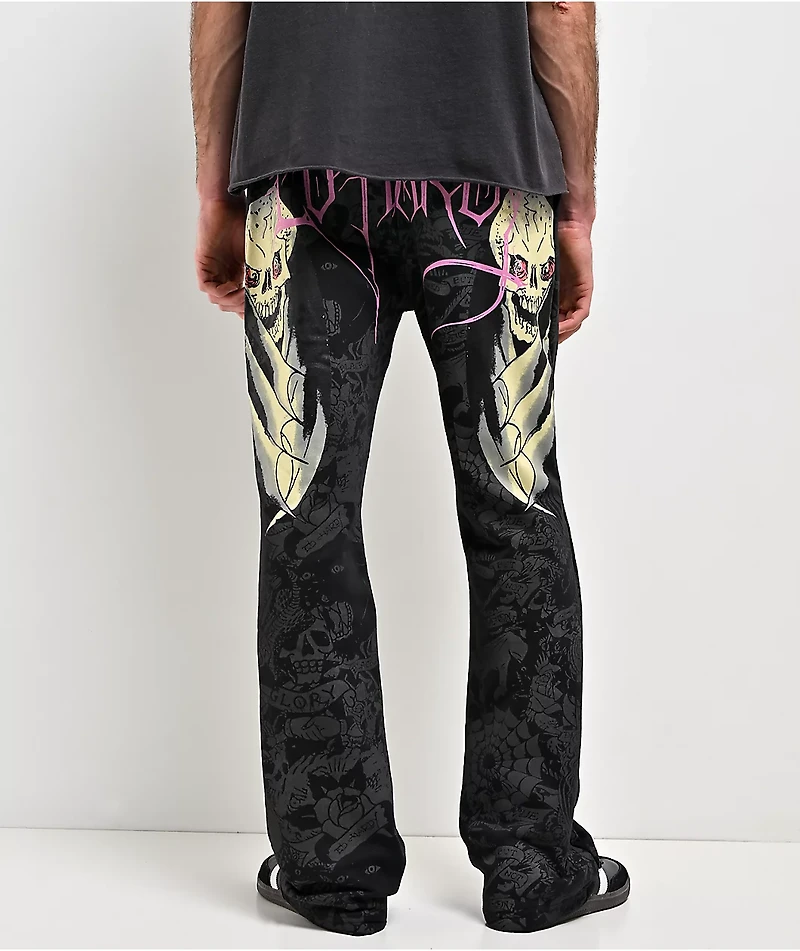 Ed Hardy Bat Skull Black Bootcut Sweatpants