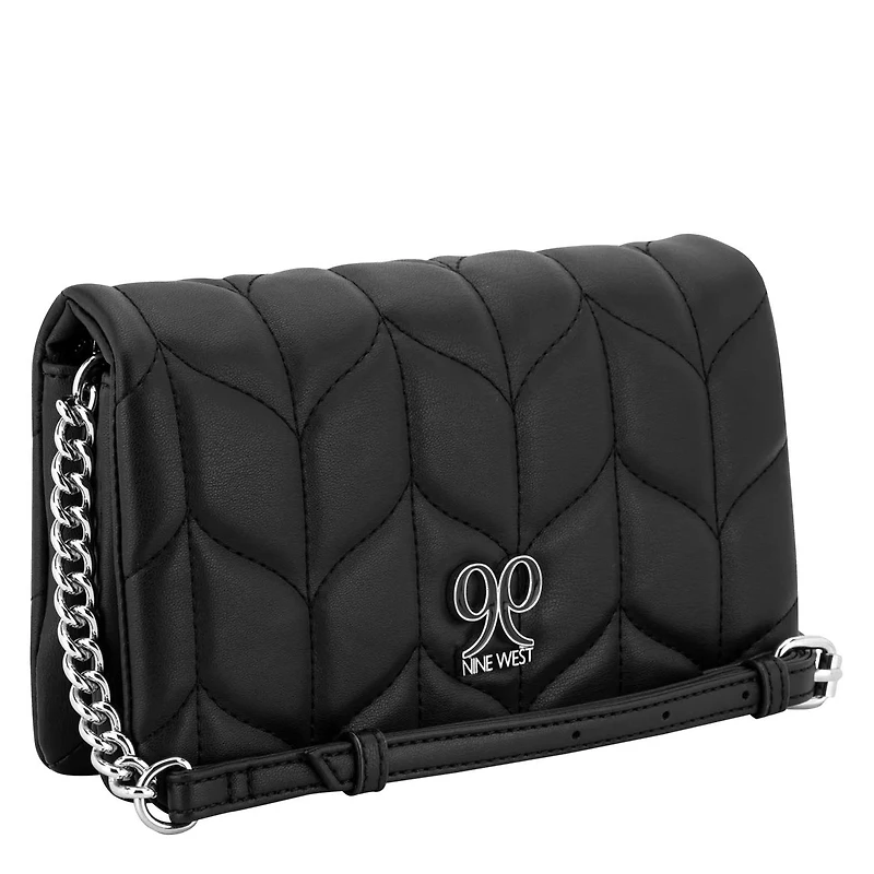 - PVC shellMagnet SnapPolyester liningNine West applique at the frontOne interior zip pocket Card SlotsAdjustable crossbody strap; 22" drop2.76" H x 8.66" L x 5" D