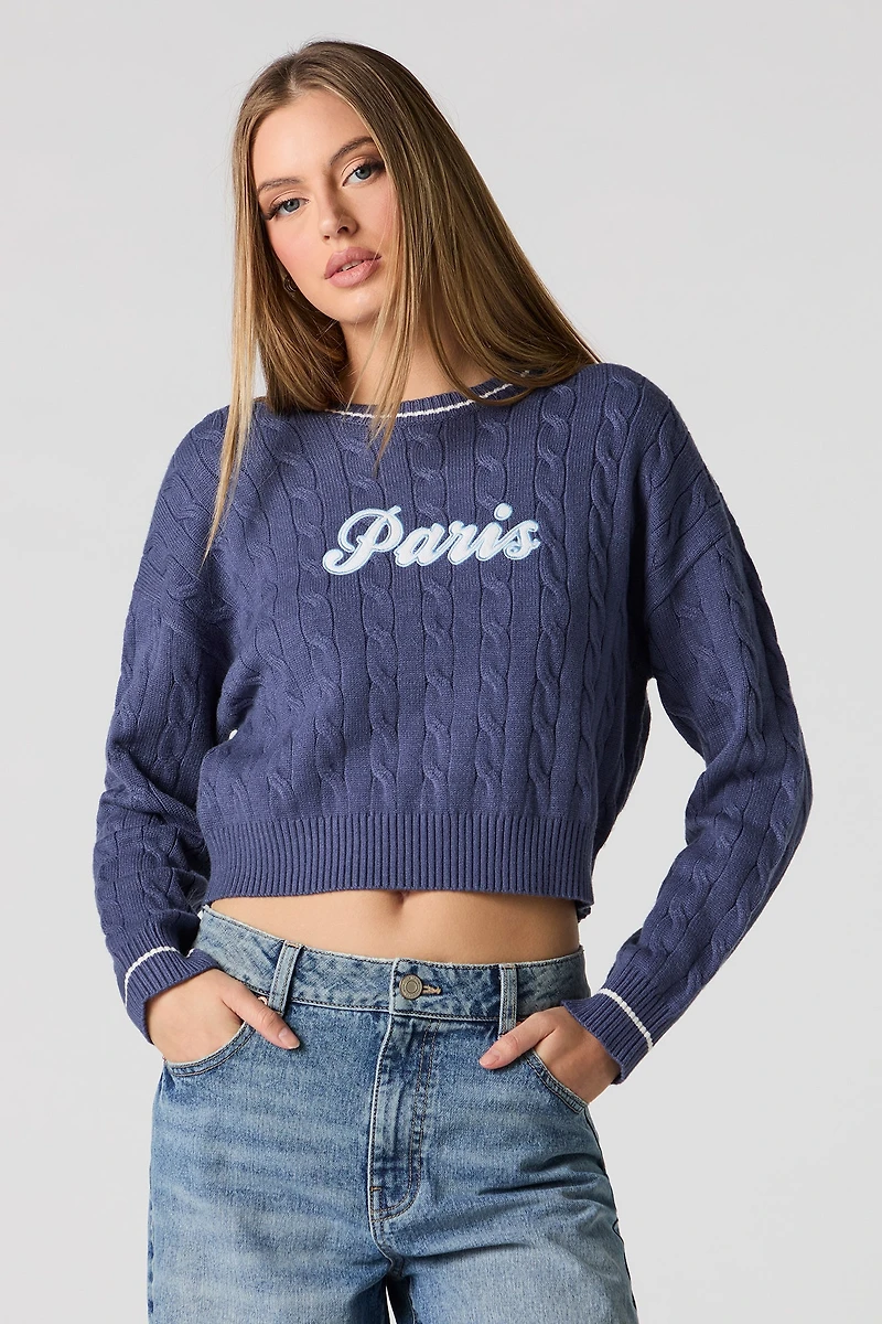 Embroidered Cable Knit Sweater