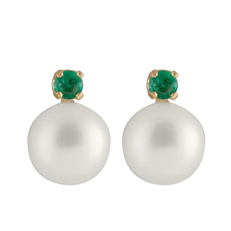 14k gold earrings with 7-7½mm white freshwater pearls and emerald.