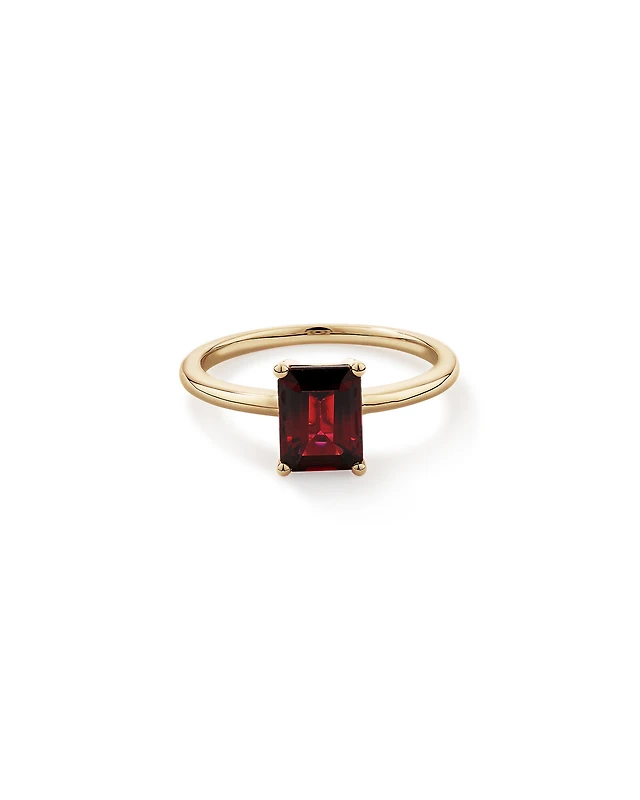 Emerald-Cut Garnet Solitaire Ring 10K Gold
