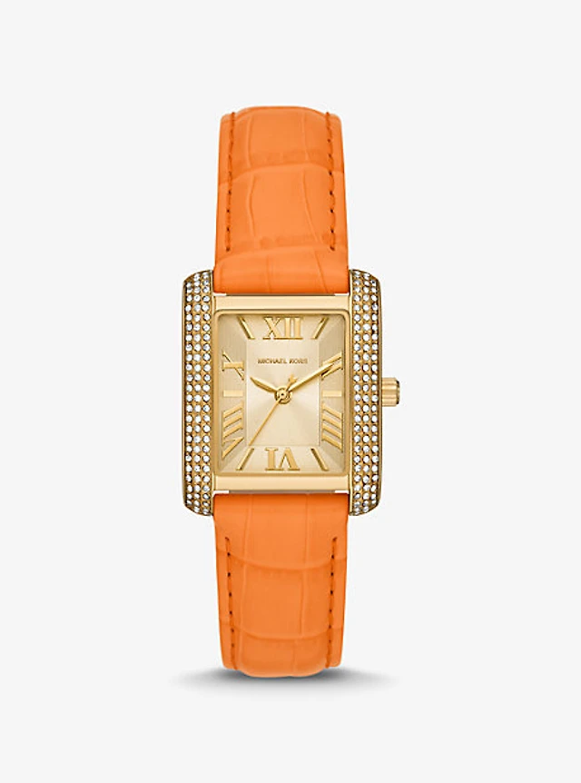 Emery Pavé Gold-Tone and Crocodile Embossed Leather Watch