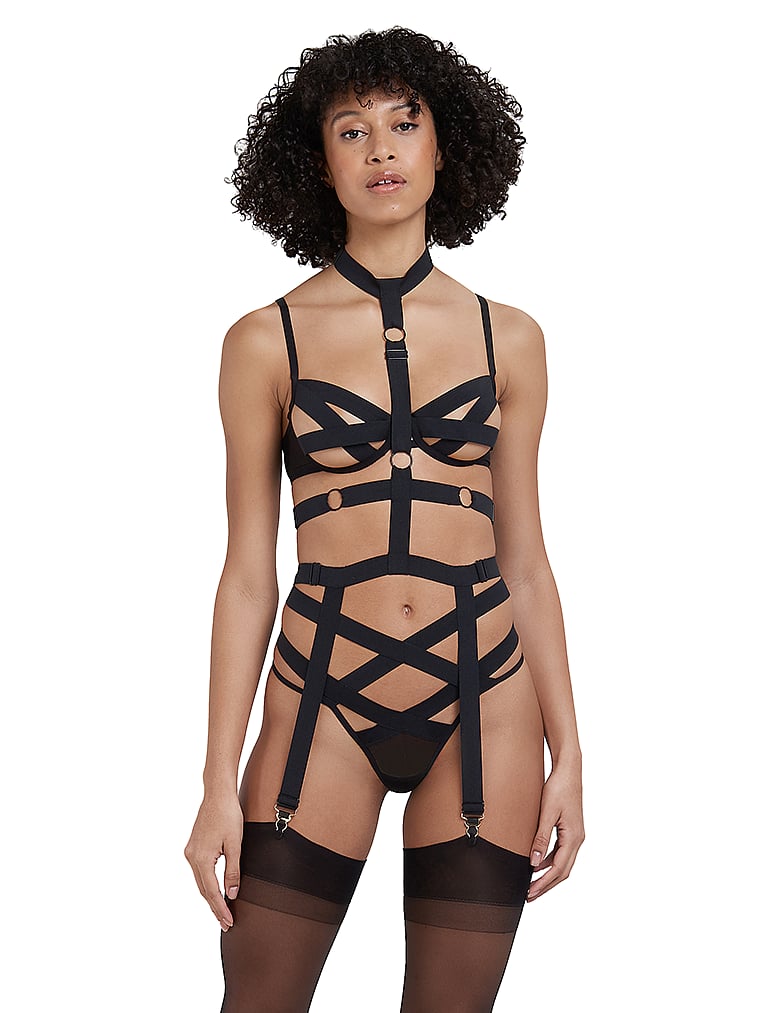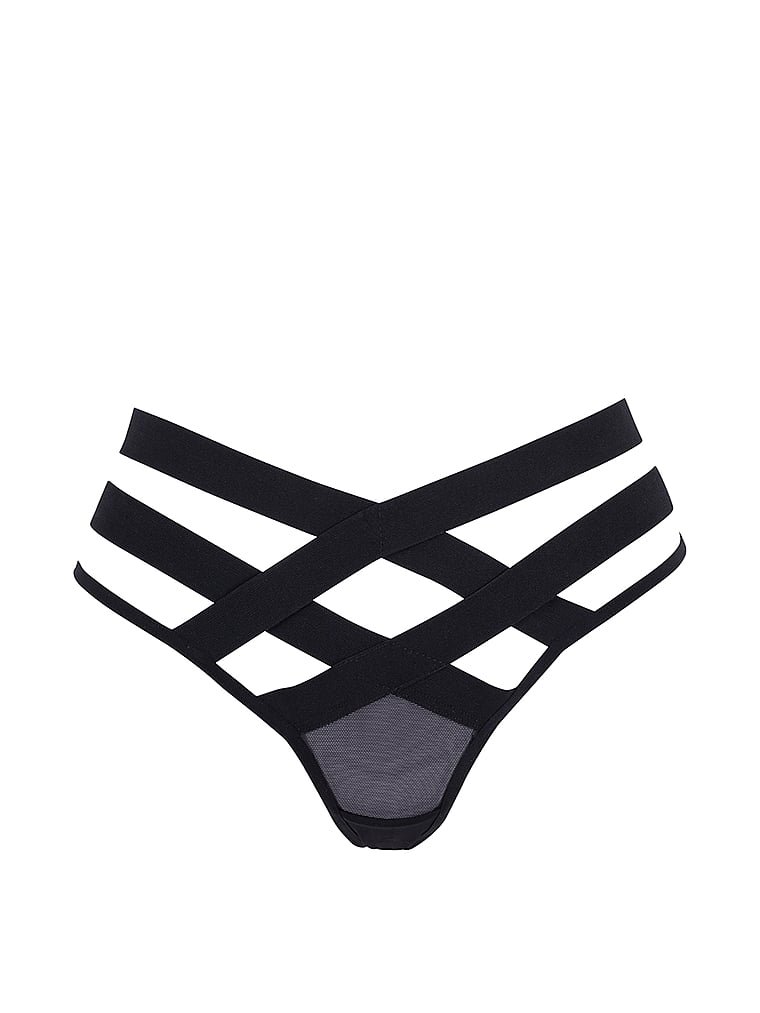 This provocative, strappy style is a must-have in any contemporary lingerie wardrobe. Wide elastic bands create a high-waisted, cutout silhouette, with super-fine, sheer mesh panels adding textural contrast.