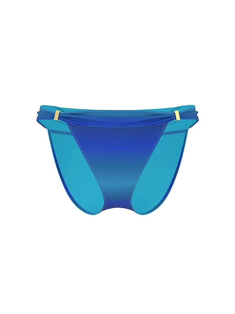 Finished with gleaming golden hardware, our ultra-soft, new swim fabric gets even chicer. Here, in a classic-coverage design with ruching at the waist for a touch of texture. Pairs perfectly with the Harlow Halter Push-Up Bikini Top for the total look.
