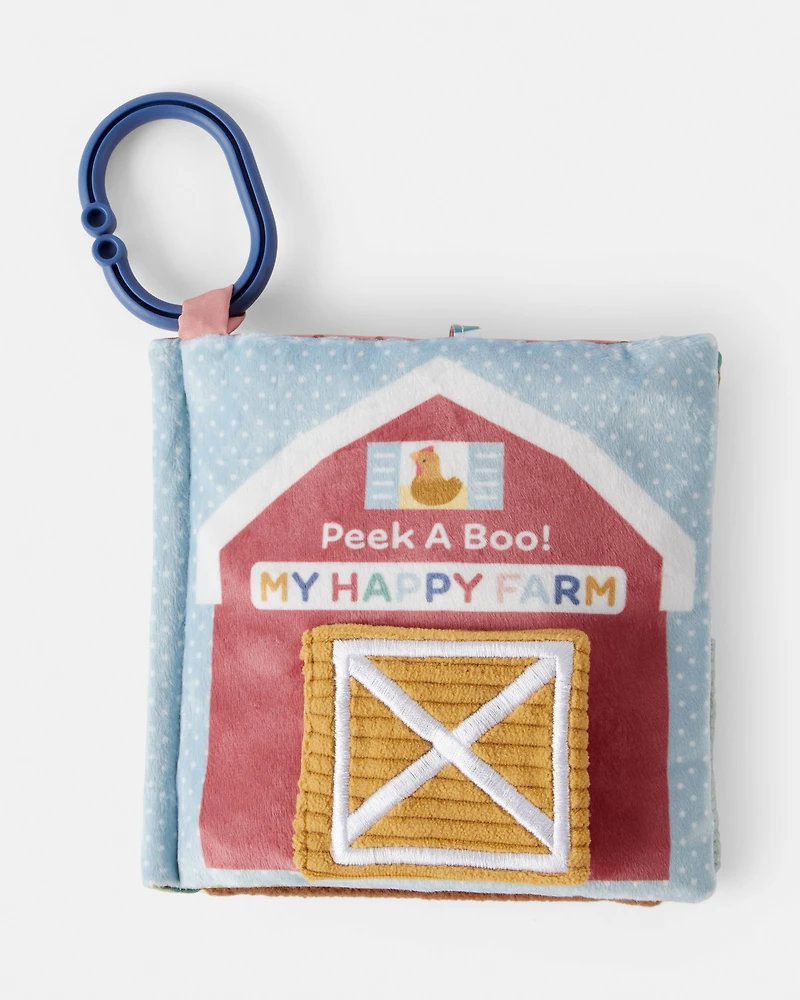 This soft farm-themed activity book is perfect for tiny hands and curious minds. With playful textures, peek-a-boo flaps, and bold animal illustrations, it's built to keep babies busy during playtime or on the go. Tethered with an easy clip, it hooks to strollers, car seats or diaper bags like it was born to travel. Bonus: no batteries, no noise - just good old-fashioned sensory fun.