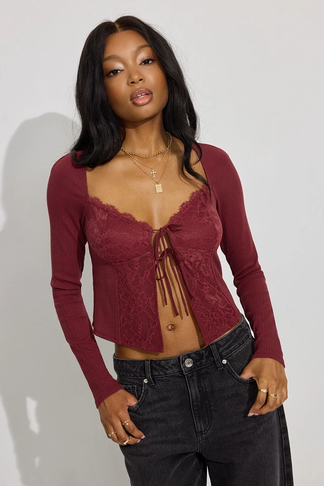 Flyaway Lace Rib Top