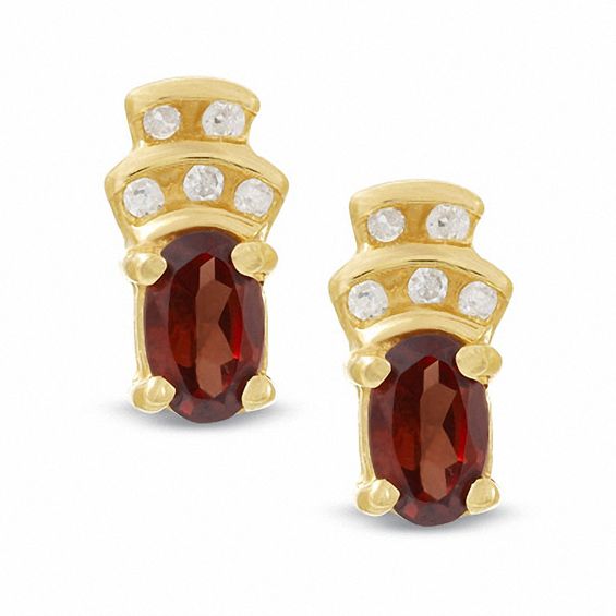 Garnet Crown Earrings in 10K Gold with Diamond Accents