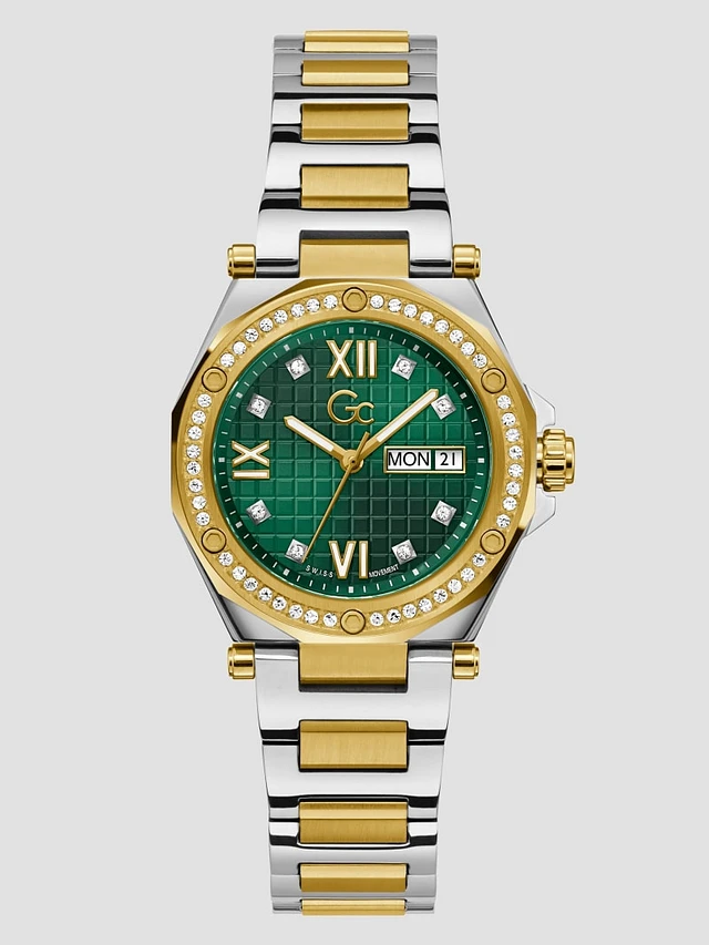 Gc Two-Tone and Green Analog Watch